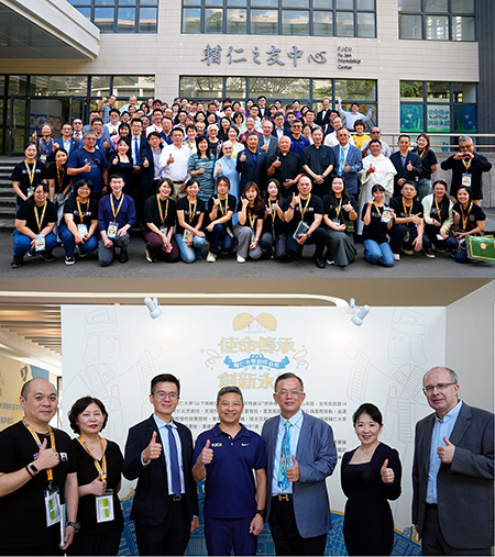 下排左起:國際及兩岸教育處林耀南國際長、校史室主任顧孝永神父、校牧何萬福神父