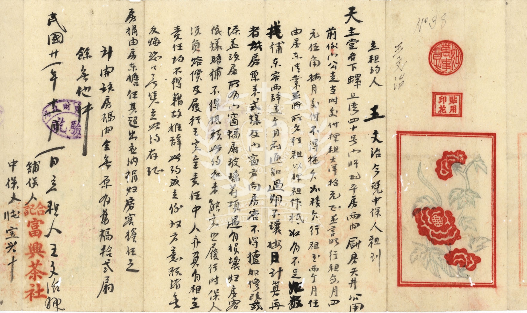 鋪保人:合記富興茶社。 中保人:□寶興。 所有者:南京天主堂。