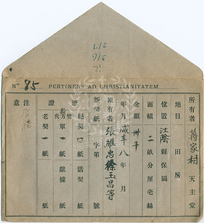 原有者:張維忠、徐玉昌。 所有者:蔣家村天主堂。